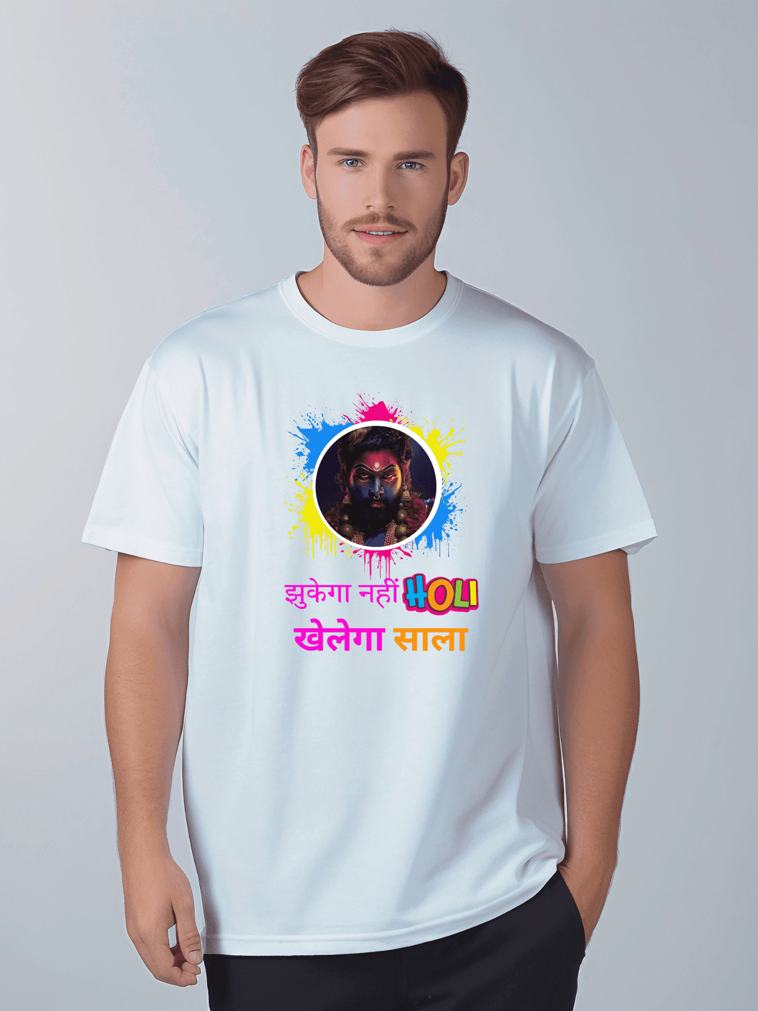 Holi T-Shirt – Vibrant Festival Wear, Quick-Dry & Breathable | Unisex | Pushpa jhukega nahi holi khelega