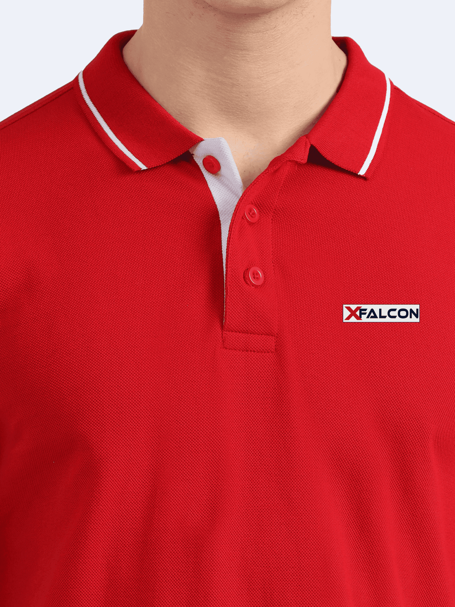 Uplift your wardrobe with the XFALCON Red Organic Polo T-Shirt with Tipping, crafted with 100% premium biowashed cotton for unbeatable softness, durability, and breathability. Featuring a refined 270 GSM fabric, this polo ensures long-lasting structure and comfort. The bold red color adds a touch of modern elegance, while the contrast tipping on the collar and placket, along with velvet tape accents, gives it a striking, elevated look. Side slits provide ease of movement, making it ideal for both active and casual all-day wear. Manufactured in a sustainable green facility, this eco-friendly polo is the perfect blend of style, comfort, and responsibility.