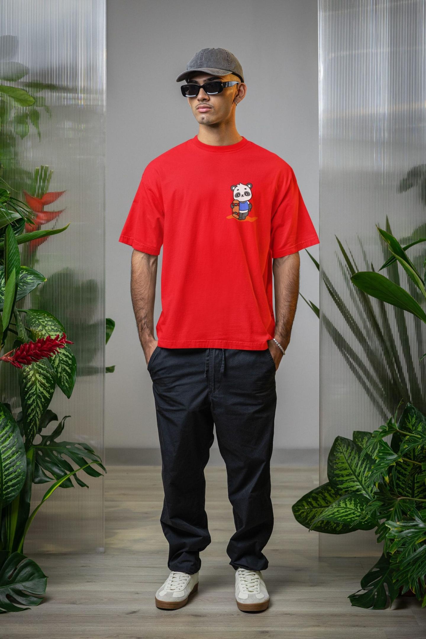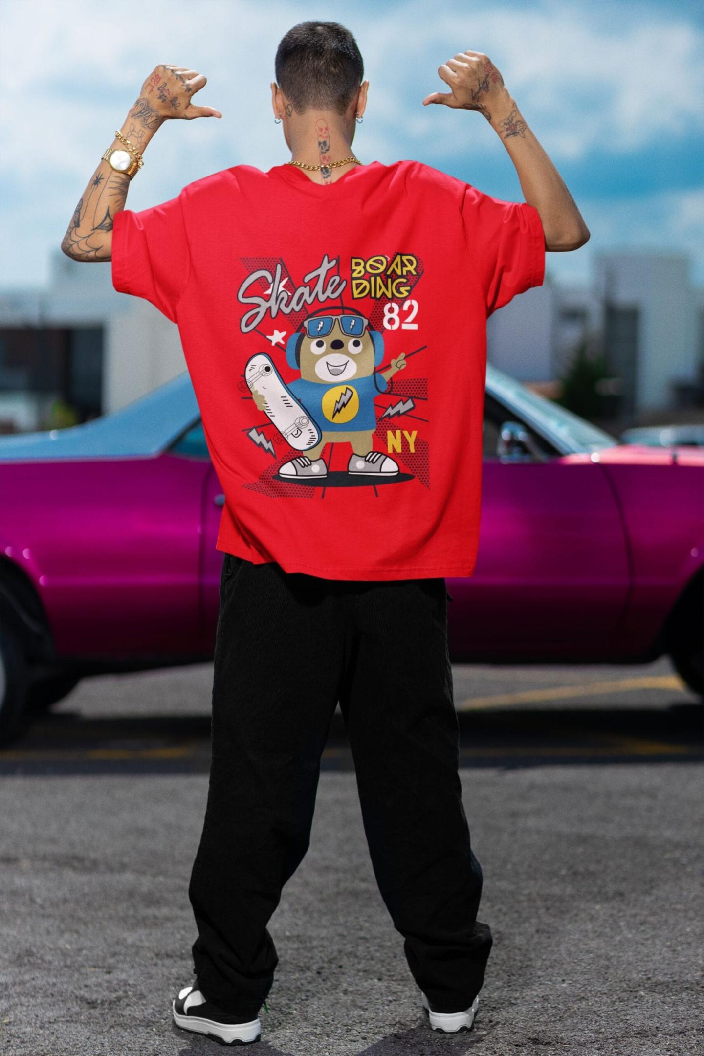 Oversized Printed T-Shirt – 100% Cotton French Terry | Unisex | Red Skate