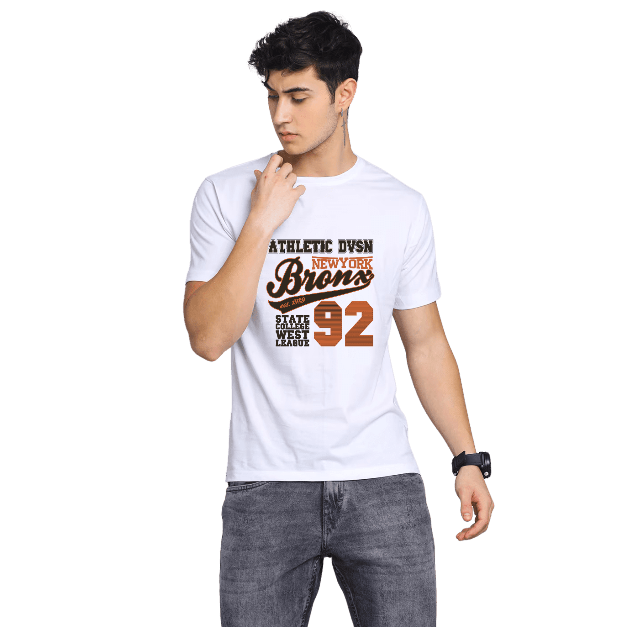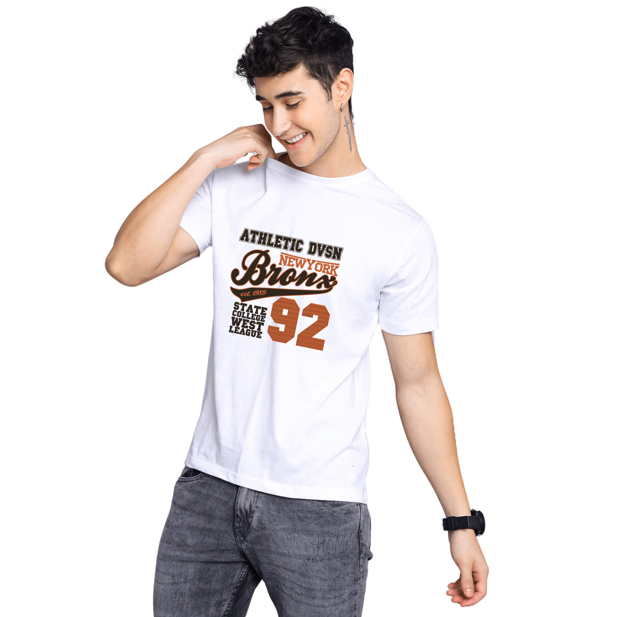 Enhance your everyday look with this White Printed T-Shirt for Men, crafted from a premium cotton blend fabric for ultimate comfort and durability. This T-shirt features a stylish front print on a classic white base, making it a perfect pick for anyone who loves minimalist fashion with a trendy edge.