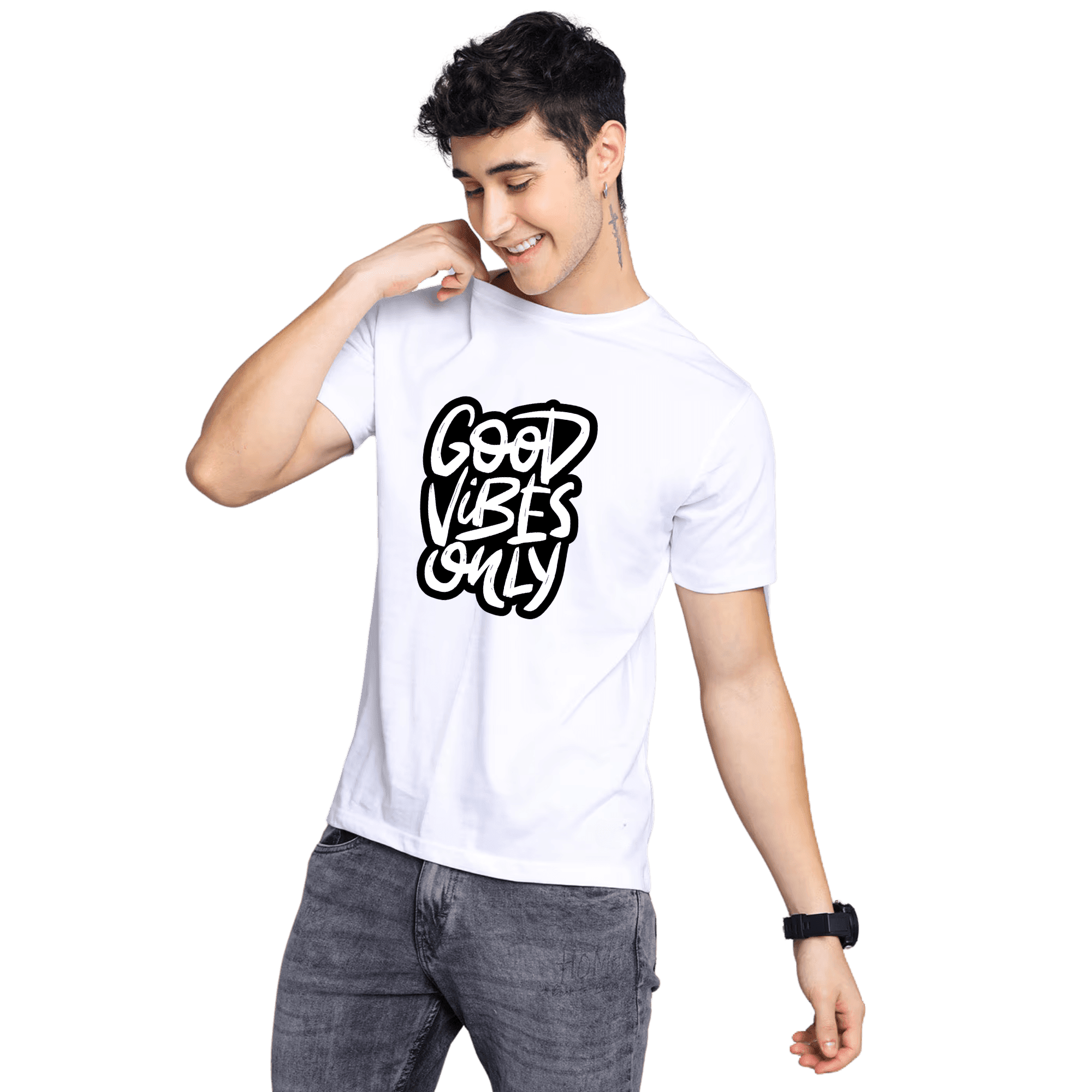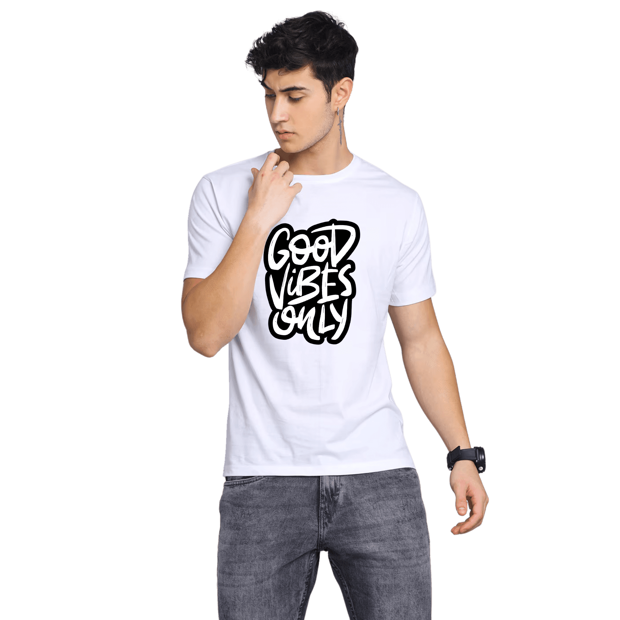 White Printed T-Shirt | Good Vibes